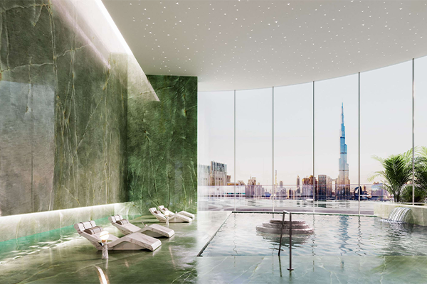 With panoramic glass walls overlooking Dubai’s iconic Burj Khalifa, this tranquil retreat combines exquisite design with an ambiance of calm. Unwind on designer loungers or take a soothing swim surrounded by natural light the ideal escape to recharge and reconnect in absolute sophistication.
